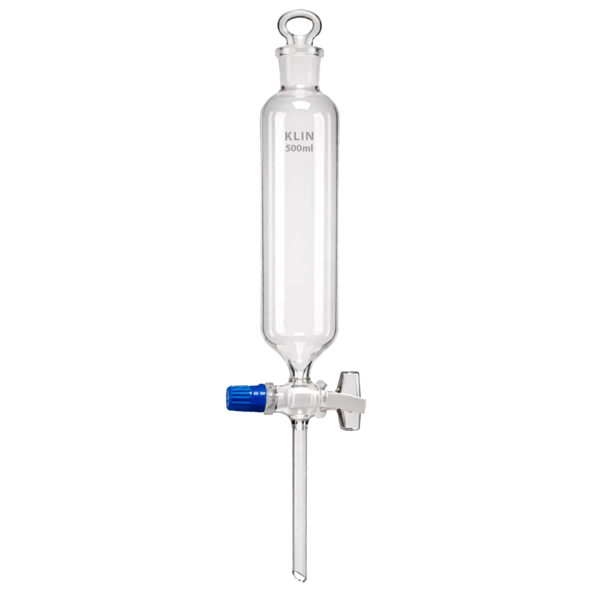 Воронка делительная KLIN ВД-1-500 цилиндрическая - это стеклянный цилиндрический или сосуд, применяемый чаще всего для разделения несмешивающихся жидкостей.
