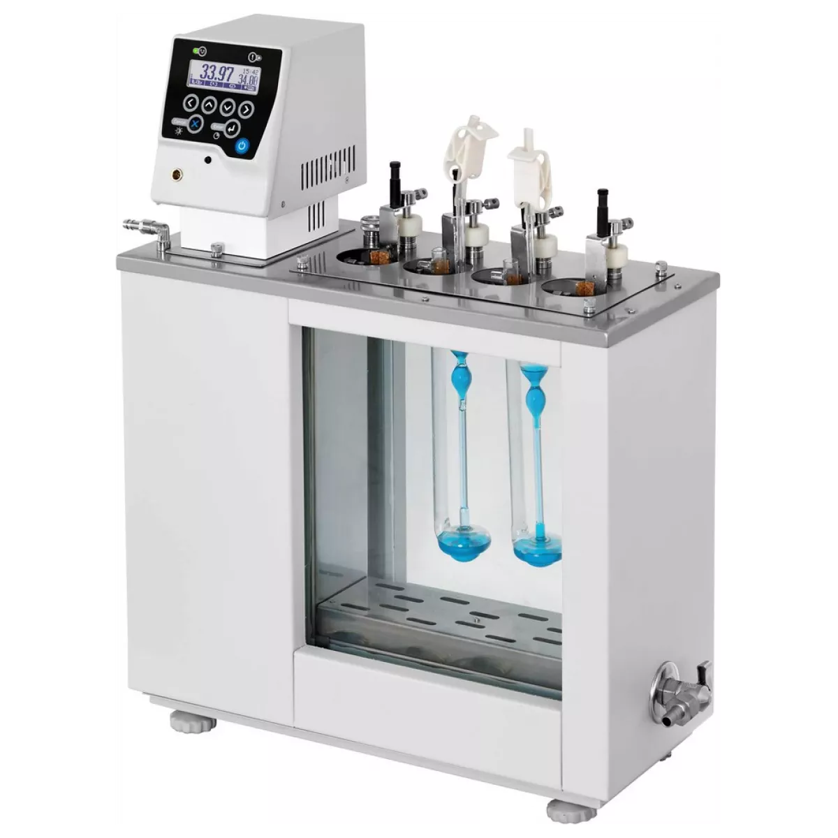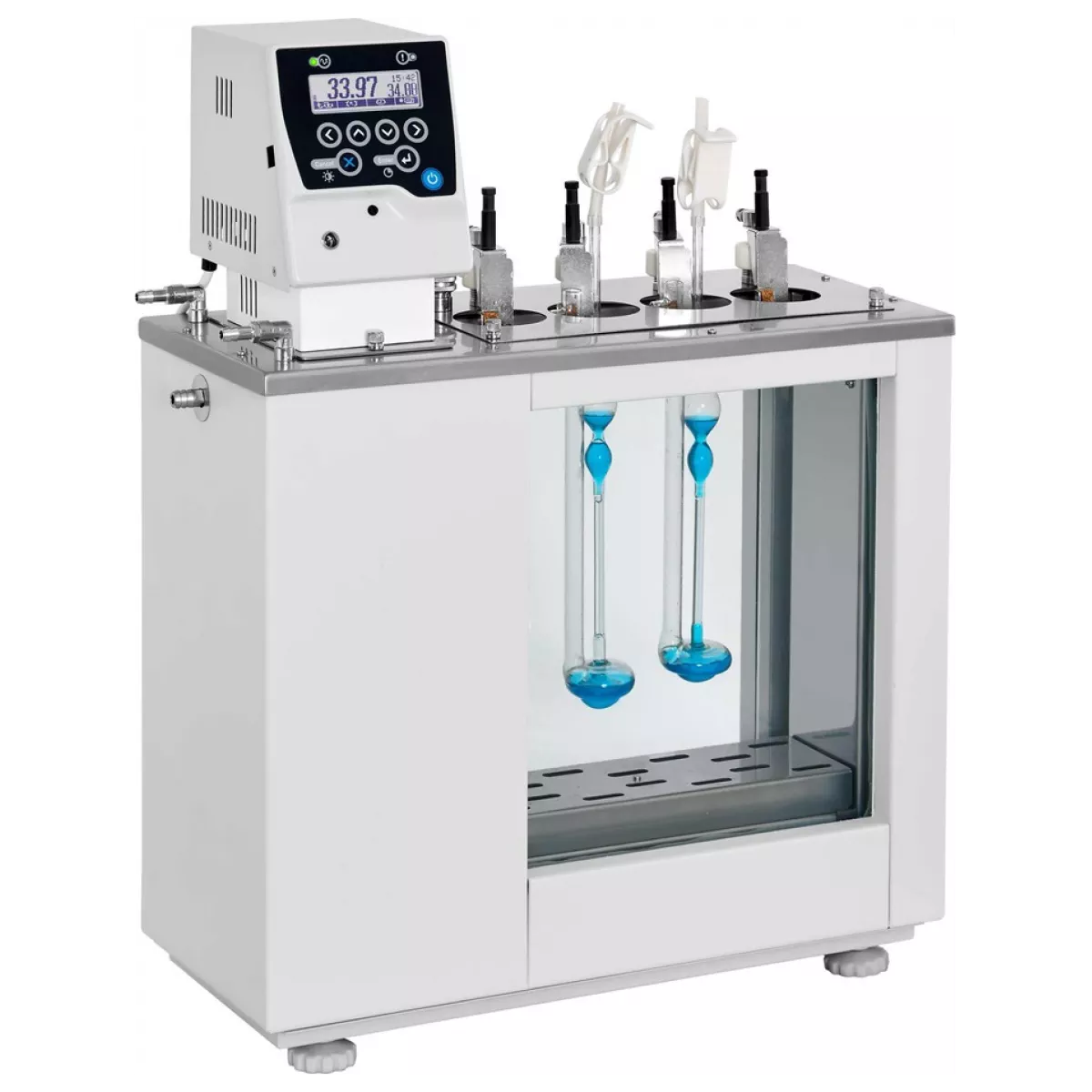 Термостат ВИС-Т-08-4 жидкостной используется для поддержания заданной температуры при проведении измерений вязкости нефтепродуктов с помощью стеклянных вискозиметров в соответствии с ГОСТ 33, ASTM D445, IP 71, ISO 3104 и DIN 51366.
