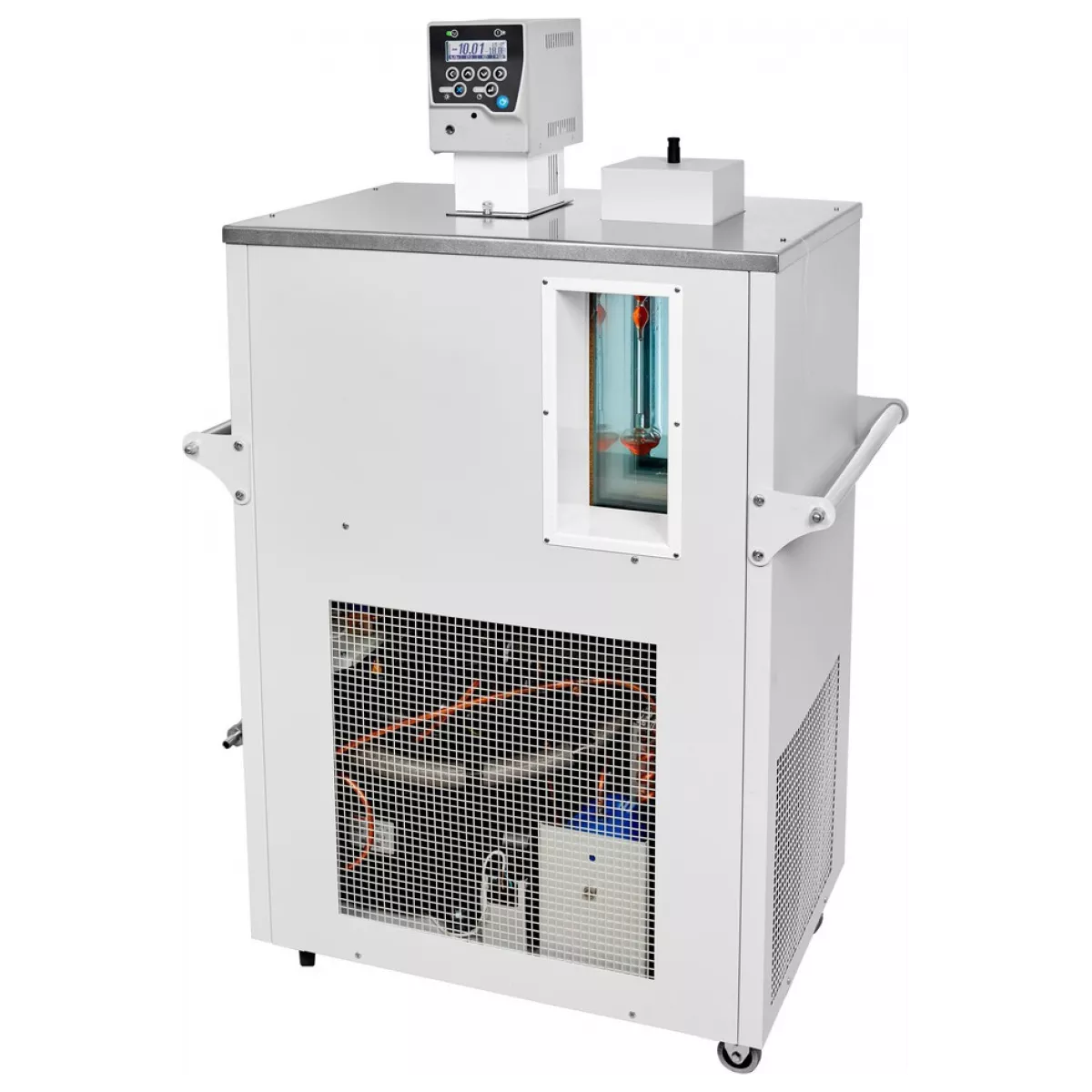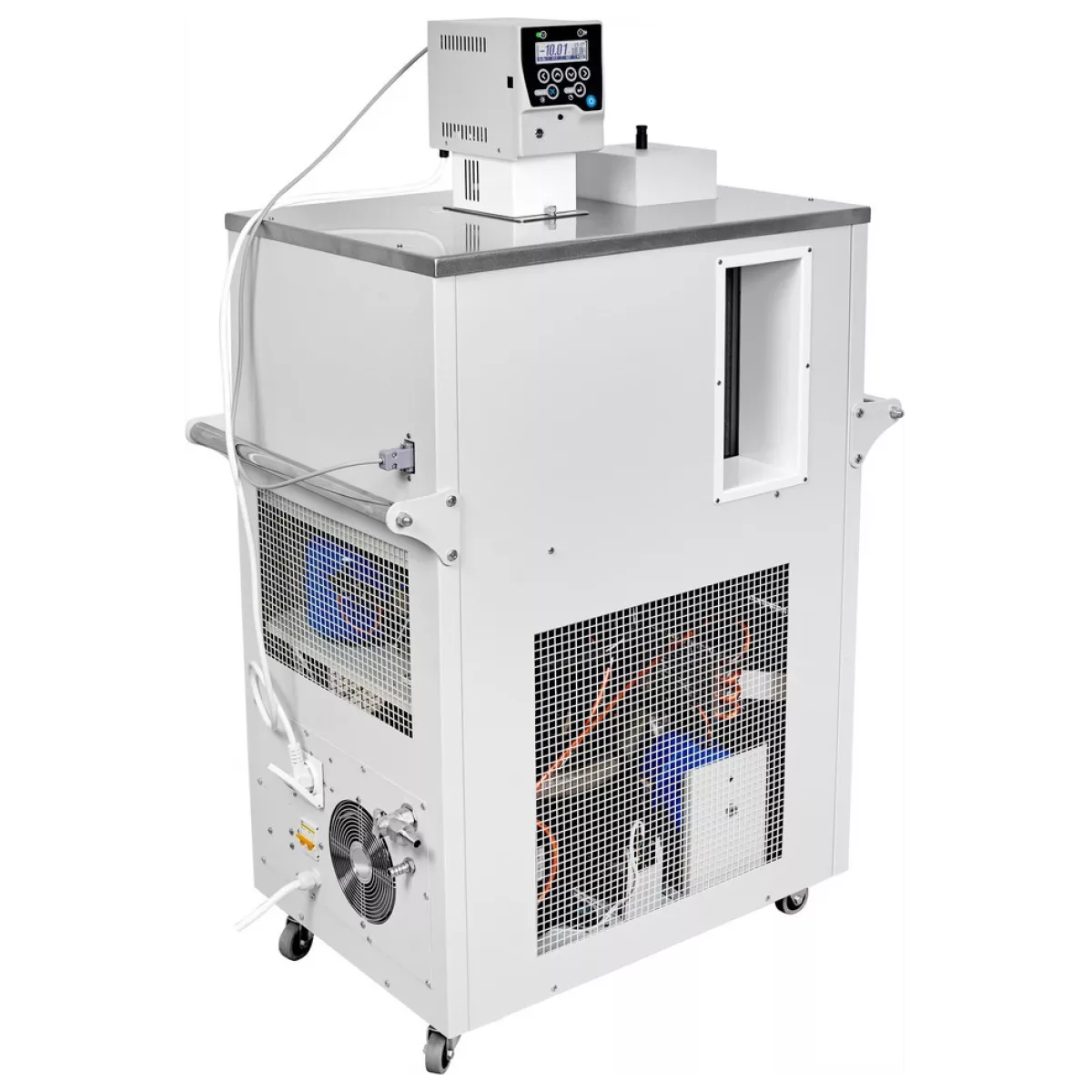- Конструкция блока регулирования, объединяющая в герметичном объёме датчик температуры, нагреватель и циркуляционный насос, гарантирует высочайшую равномерность и стабильность температурного поля в рабочей камере термостата