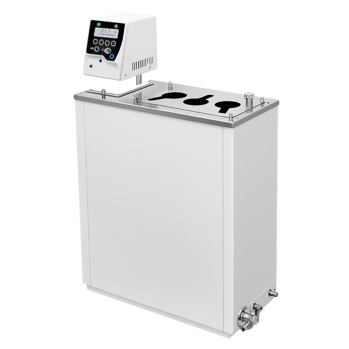 - Уникальная компоновка блока регулирования (датчик температуры, нагреватель и циркуляционный насос в общем замкнутом объёме) обеспечивает превосходную стабильность и однородность температуры в рабочем пространстве термостата