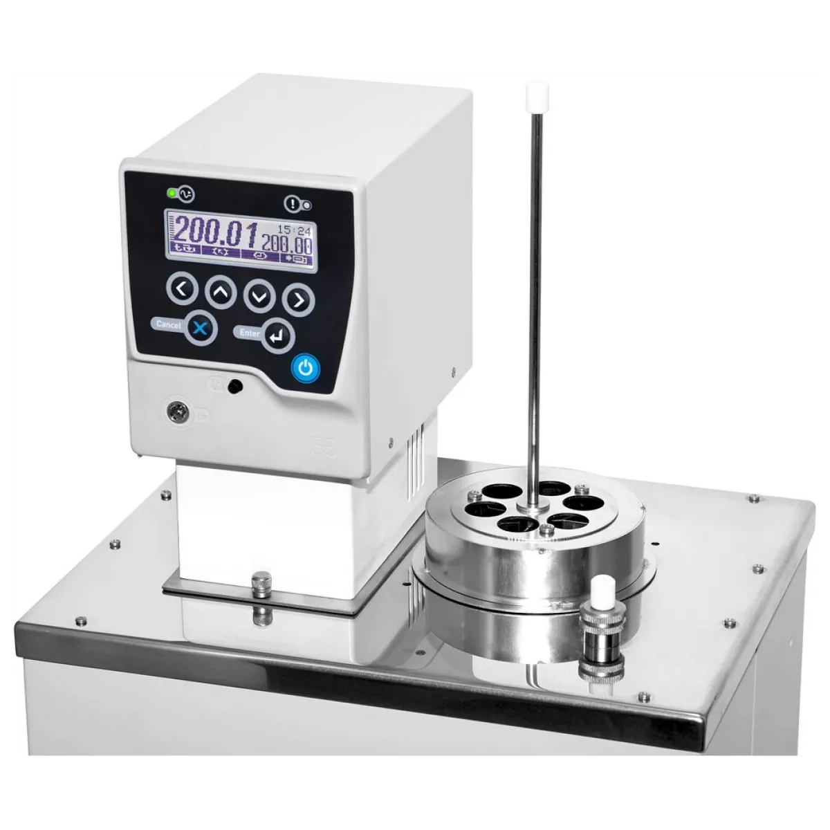 - Эффективное управление холодильной машиной обеспечивает оперативное изменение температуры термостата — как нагрев, так и охлаждение — при корректировке уставки
