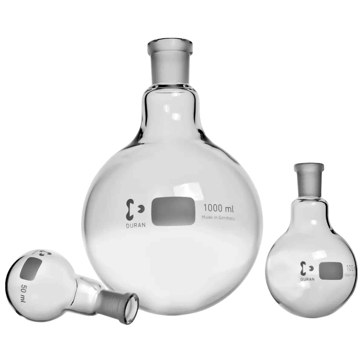 Колбы круглодонные с шлифом Schott Duran соответствуют стандарту ISO 4797 и изготавливаются из стекла марки Duran.