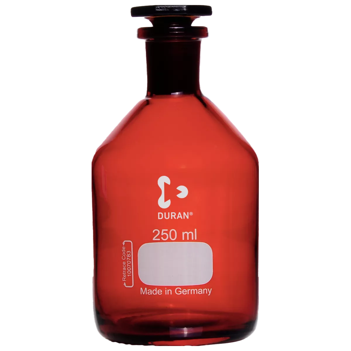 Склянка DWK (Schott Duran) 250 мл, темная, узкое горло предназначена для хранения жидких химреактивов и твердых сыпучих веществ. Так как склянка состоит только из стеклянных частей, она подходит для хранения агрессивных химреактивов которые могут вступать в реакцию с пластиком. Склянки Schott Duran изготовляются из стекла марки Duran и соответствуют ISO 4796-2. На каждую банку нанесен Retrace Code, позволяющий получить сертификат качества на партию через Интернет.