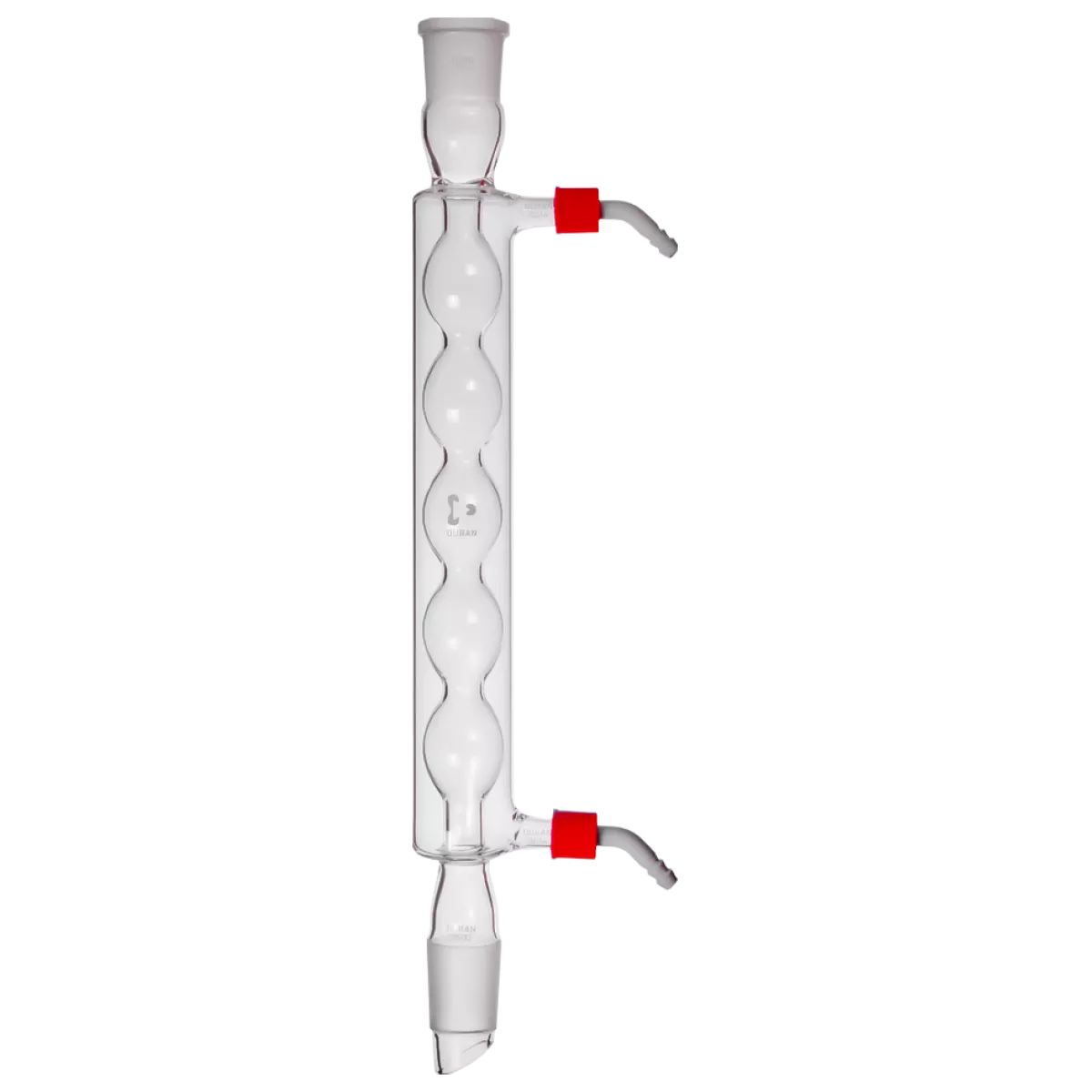 Холодильник ХШ-250-29/32-29/32, DWK (Schott Duran) применяется для конденсации и возвращения паров растворителя в реакционную смесь. Холодильники ХШ (Аллина) имеют большую теплообменную поверхность по сравнению с холодильниками ХПТ вследствие чего обладают большей охлаждающей способностью. Холодильники ХШ (Аллина) Schott Duran изготавливаются из стекла марки Duran и соответствуют стандарту DIN 12 576.