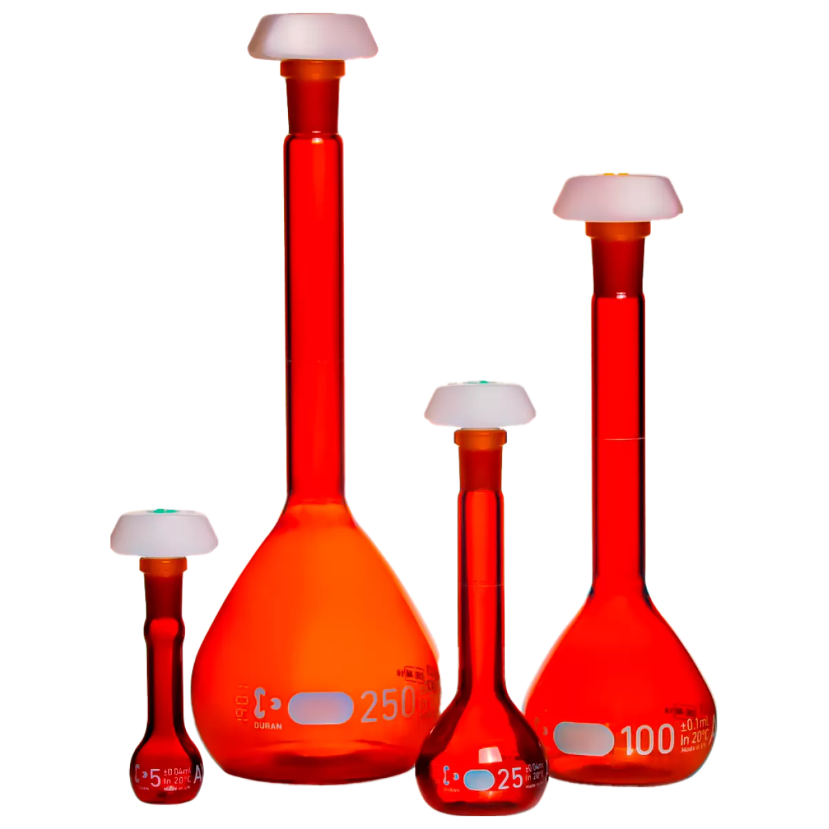 Колба мерная темная DWK (Schott Duran) 2000 мл с пластмассовой пробкой, класс А используется для приготовления растворов и отмеривания точных объемов жидкостей. Колбы мерные Schott Duran производится из стекла марки Duran и соответствуют международному стандарту ISO 1042 класс А. Красящее вещество нанесено только на внешнюю поверхность стекла, что гарантирует неизменность свойств внутренней поверхности. Покрытие обеспечивает защиту от излучения приблизительно до 500 нм. Белая маркировка. Калибровка производится на наливной объем при t = 20 °С. Все колбы комплектуются полиэтиленовыми пробками. Колбы поставляются в 2-х вариантах с сертификатом о калибровке на партию (доступен online в сети Интернет) и с индивидуальным сертификатом о калибровке (на каждую колбу нанесен индивидуальный номер).