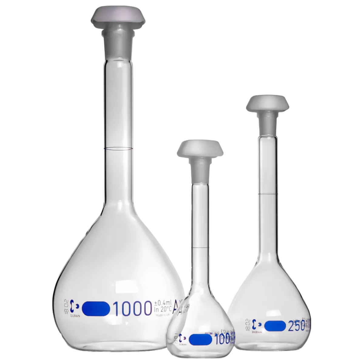 - с голубой градуировкой и индивидуальным сертификатом калибровки (на каждую колбу наносится индивидуальный номер)