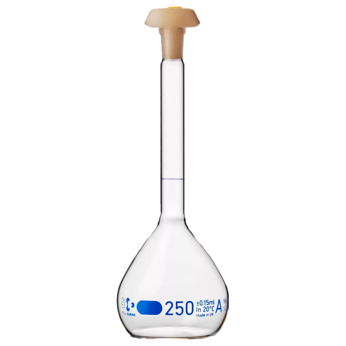 Колба мерная DWK (Schott Duran) 250 мл 14/23, класс А, с пластиковой пробкой, синяя используется для приготовления растворов и отмеривания точных объемов жидкостей. Колбы мерные Schott Duran производится из стекла марки Duran и соответствуют международному стандарту ISO 1042 класс А. Калибровка производится на наливной объем при t = 20° С. Все колбы комплектуются полиэтиленовыми пробками.