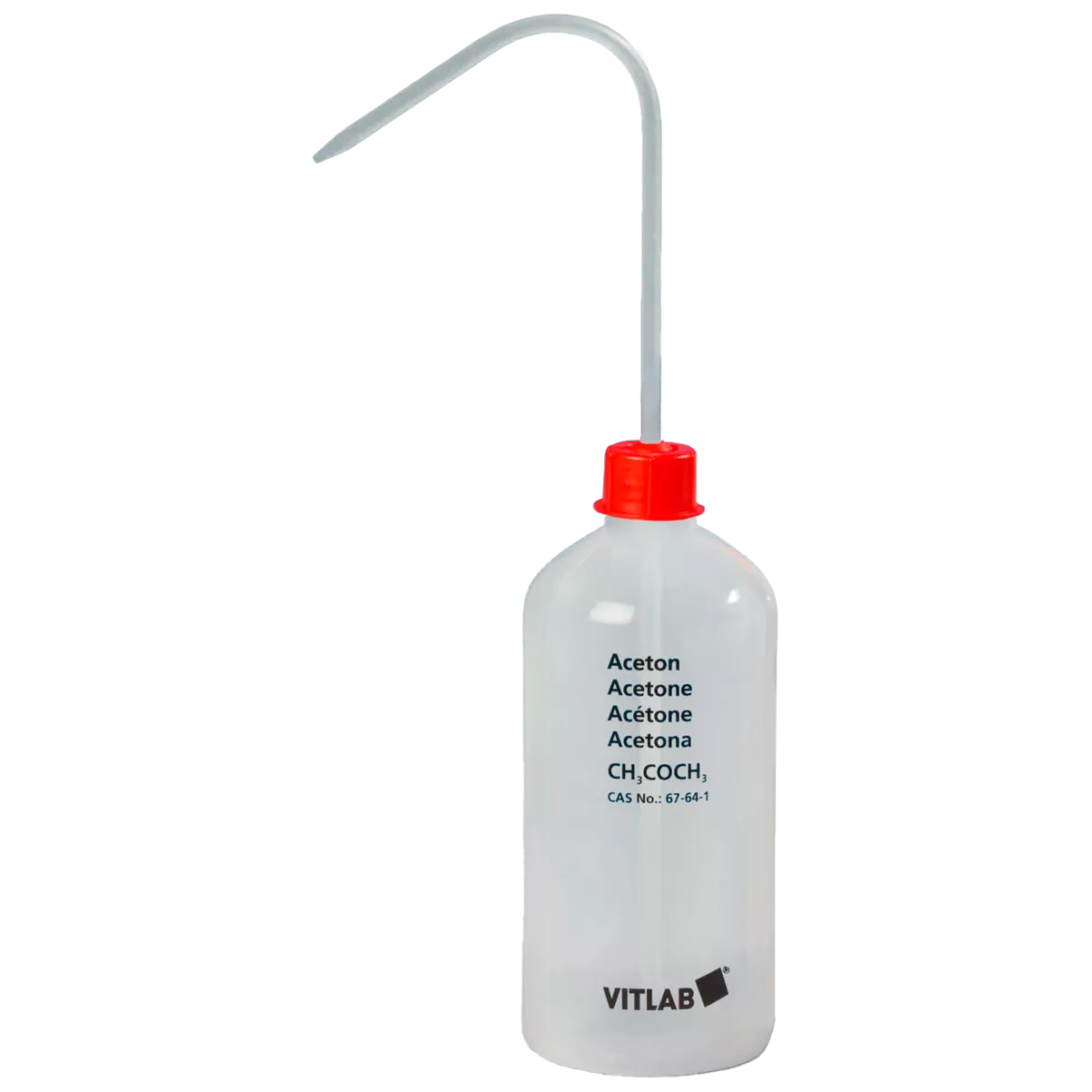 Промывалка 1000 мл Vitlab VITsafe GL 32, Acetone, узкое горло это удобный и практичный инструмент для обеспечения чистоты, гигиены в лаборатории, используется для промывания или ополаскивания лабораторной посуды, кювет, ёмкостей и поверхностей. Промывалка состоит из бутыли и крышки с герметично закреплённым носиком, который подаёт жидкость тонкой струёй при нажатии. Бутыль изготовлена из полиэтилена низкой плотности PE-LD или полипропилена РР (для ацетона и МЕК), сливная трубка из полипропилена. Маркировка на боковой поверхности промывалки содержит информацию по технике безопасности, наименование вещества на немецком, английском, французском и испанском языках, химическая формула, регистрационный номер CAS, пиктограммой опасности, сигнальное слово, указания на опасность продукта. Вытекание или стекание каплями практически отсутствует, благодаря винтовой крышке VENT-CAP, она почти полностью препятствует созданию статического избыточного давления.