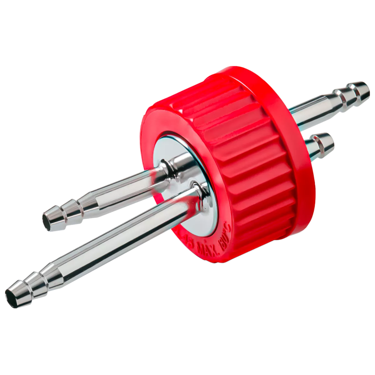 Крышка винтовая имеет по 3 или 2 порта с внутренней и наружной стороны для подсоединения шлангов с внутренним диаметром 8 мм. Свободновращающаяся часть из стали позволяет быстро открутить крышку не отсоединяя её от трубок. Отводы слегка разведены в стороны, что бы облегчить подсоединение шлангов и сделаны из нержавеющей стали типа 316L. Все компоненты соединены путем сварки. Гигиеничная, электрополированная поверхность для эффективной очистки и стерилизации. Герметичность крышки обеспечивается прокладкой из силикона. Крышка полностью автоклавируемая и имеет «Retreice code» для получения сертификата на партию через Интернет.