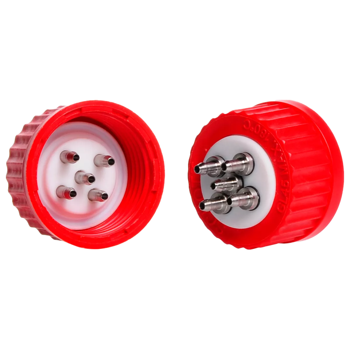 Крышка винтовая GL 45 PBT c 4 портами 3,2 мм из стали DWK (Schott Duran) - надежная и прочная соединительная система для использования с флаконами DURAN GL45 от 100 мл и более. Крышка изготовлена из PBT со вставкой из PTFE и портами из хирургической стали (316L) для трубок с внутренним диаметром 3,2мм (1/8“). Материалы крышки сертифицированы для применения с пищевыми продуктами. Температура использования до 1800С. Полностью автоклавируемая система.