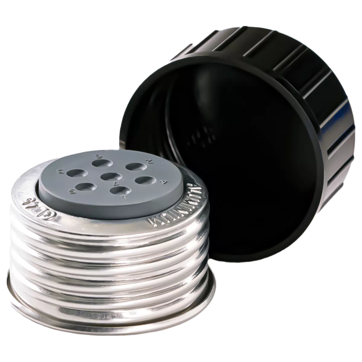 - Универсальность: крышка с отверстием (апертурой) может использоваться с пробкой из бромбутилкаучука или силиконовыми прокладками