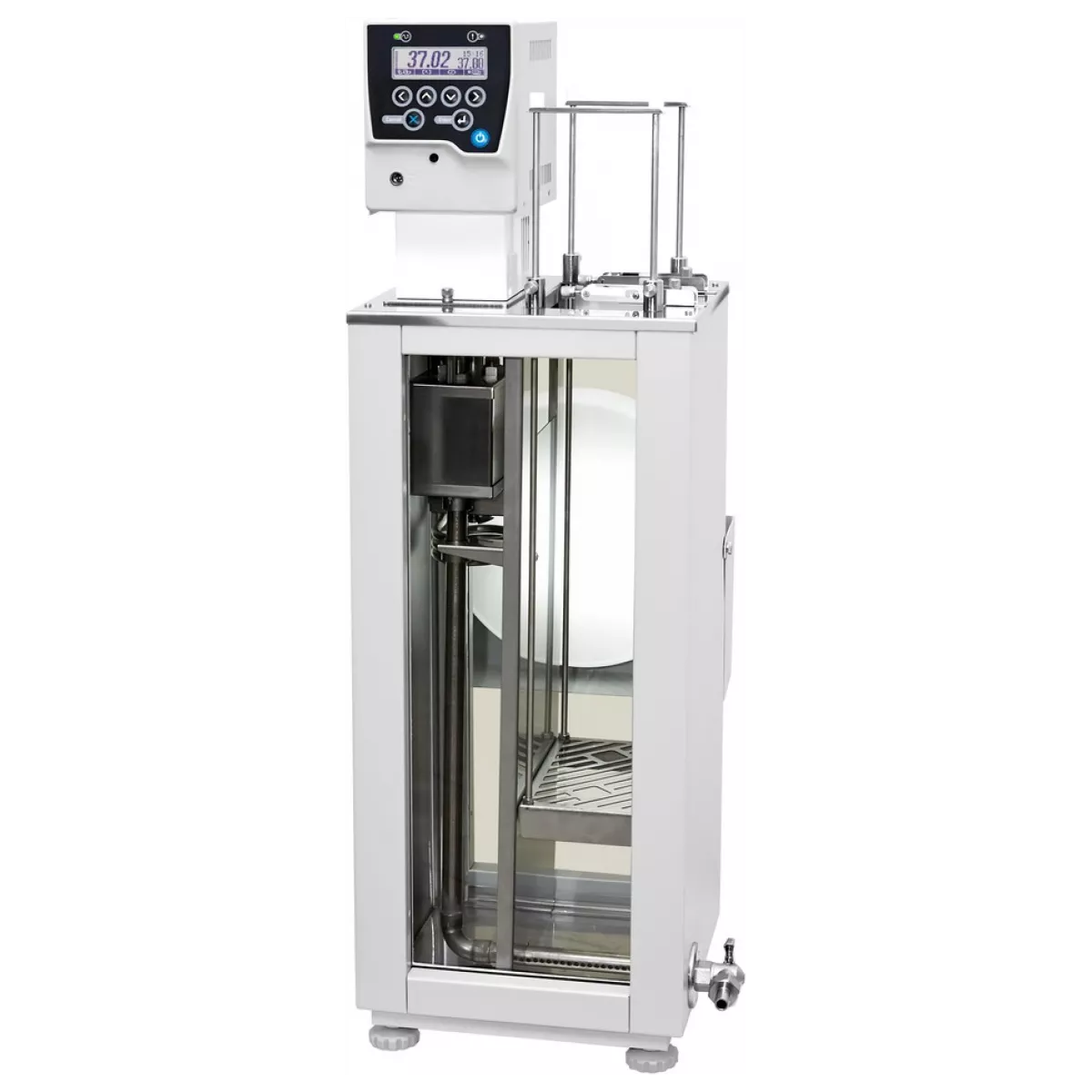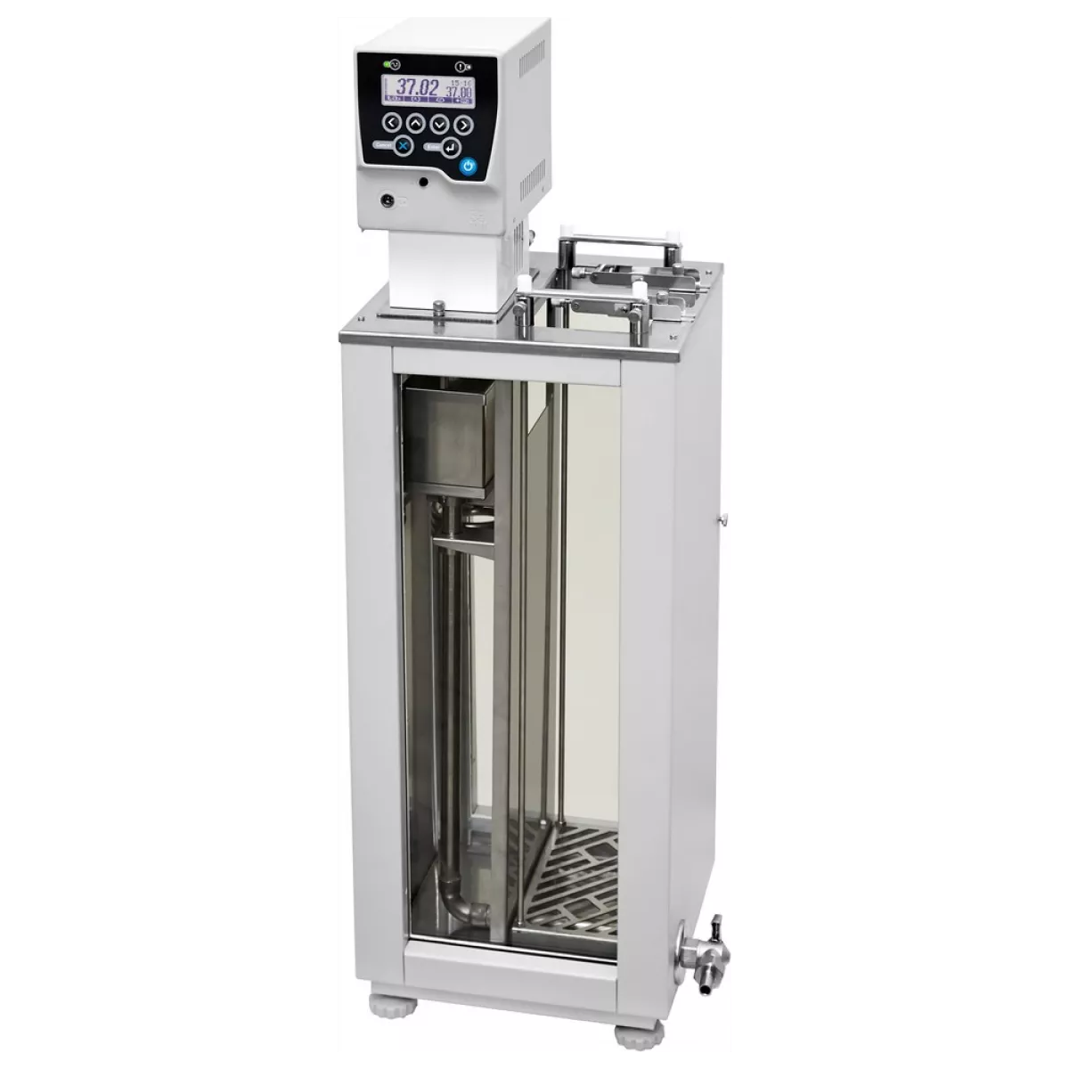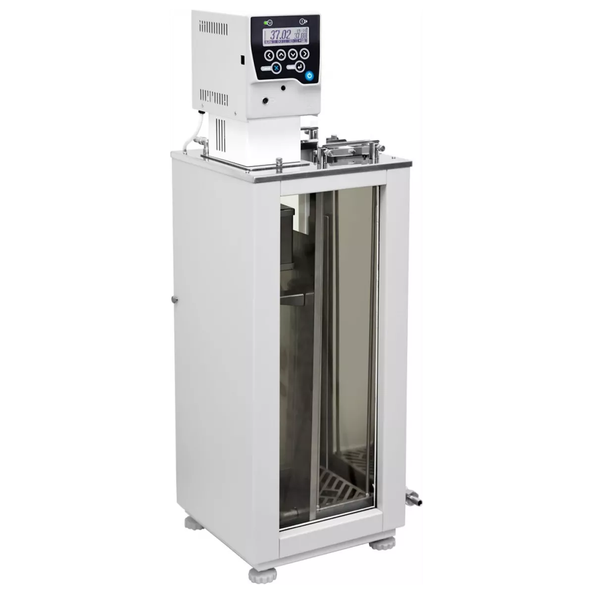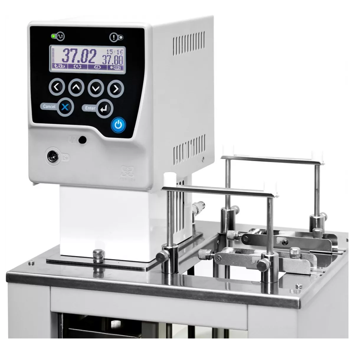 - Уникальная компоновка блока регулирования (датчик температуры, нагреватель и циркуляционный насос в общем замкнутом объёме) обеспечивает превосходную стабильность и однородность температуры в рабочем пространстве термостата.
