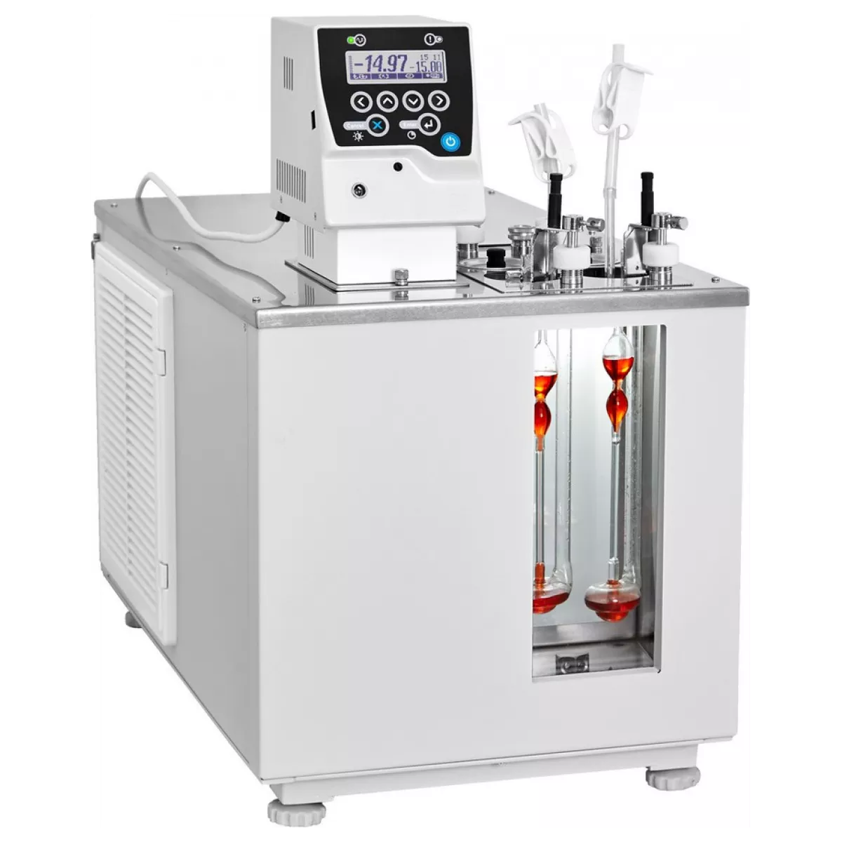 - Конструкция ванны термостата даёт возможность установить комплект приспособлений, предназначенных для измерения температуры застывания нефтепродуктов
