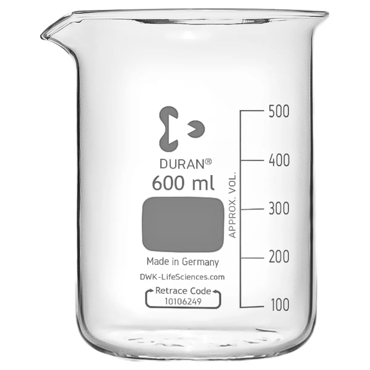Стакан лабораторный HН-600, DWK (Schott Duran) используется при проведении лабораторных и исследовательских работ: приготовления растворов, подогревании и отмеривании жидкостей и т.д. На стакан нанесена шкала белого цвета, указывающая ориентировочную вместимость. Стаканы лабораторные высокие с носиком Schott Duran соответствуют международному стандарту ISO 3819, DIN 12331 и изготавливаются из стекла марки Duran. На каждый стакан нанесен «Retrace Code», позволяющий получить сертификат качества на партию через Интернет.