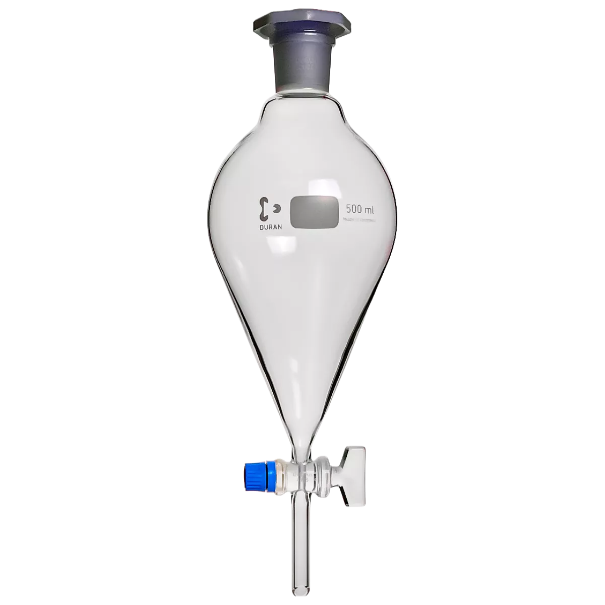 Воронка делительная грушевидная 500 мл DWK (Schott Duran) применяется для разделения двух несмешивающихся жидкостей. Воронка комплектуется NS пробкой и краном с пластиковым колпачком. Воронки делительные грушевидные Schott Duran соответствуют стандарту DIN-ISO 4800 и изготовляются из стекла марки Duran.