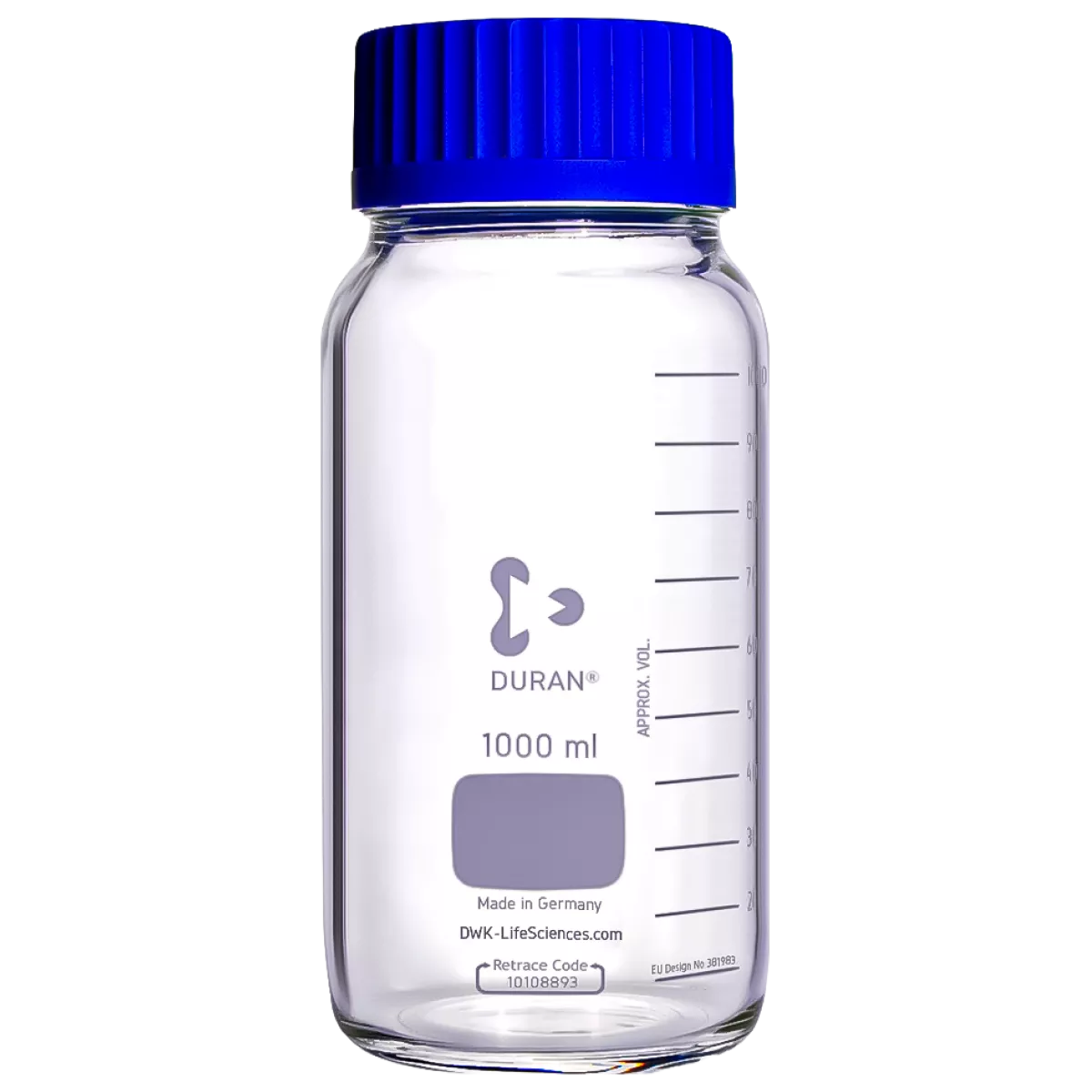 Банка для реактивов 1000 мл с крышкой, градуированная, широкогорлая GLS 80, светлое стекло, DWK (Schott Duran), 1112713