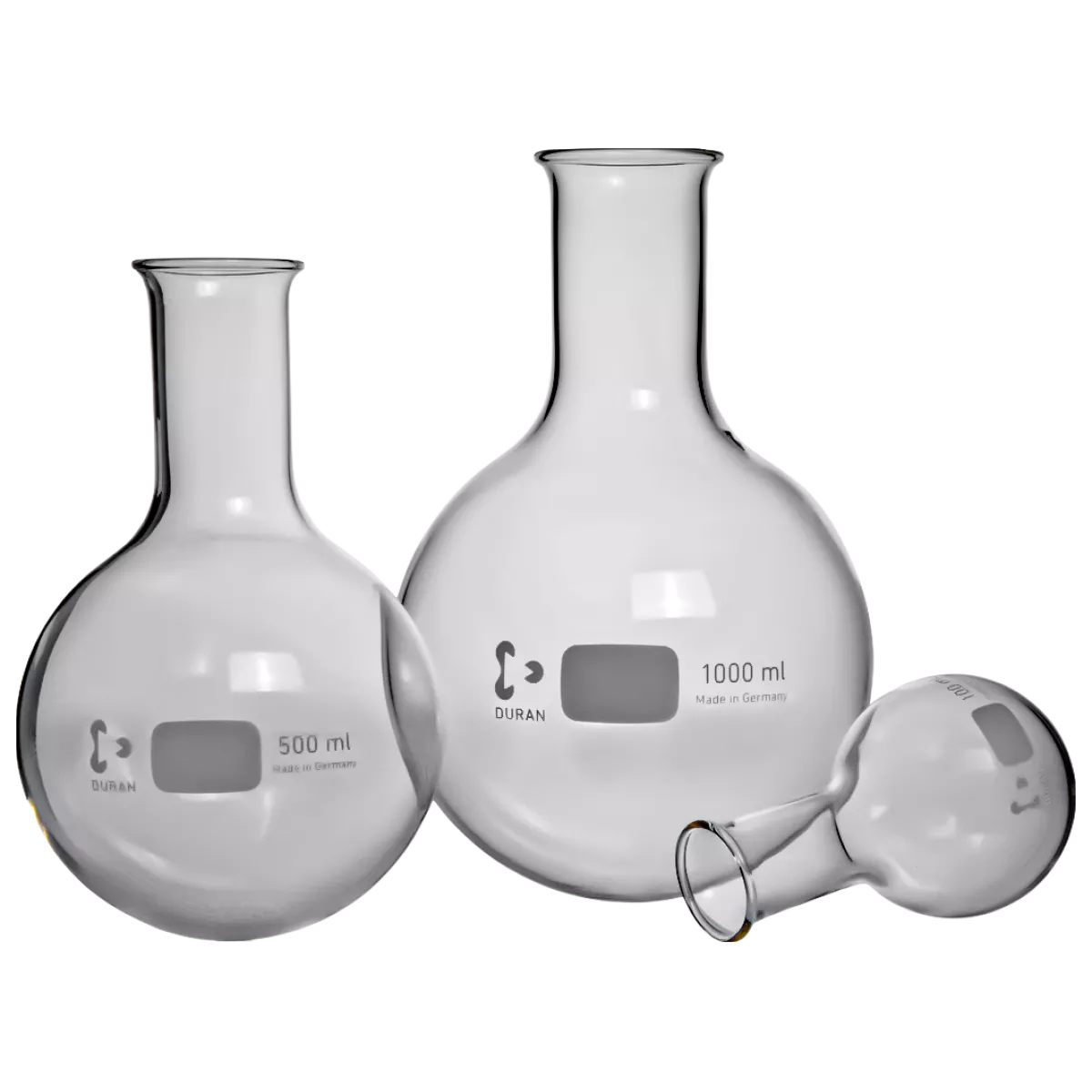 Колбы круглодонные с узким горлом Schott Duran соответствуют стандарту ISO 1773 и изготавливаются из стекла марки Duran.
