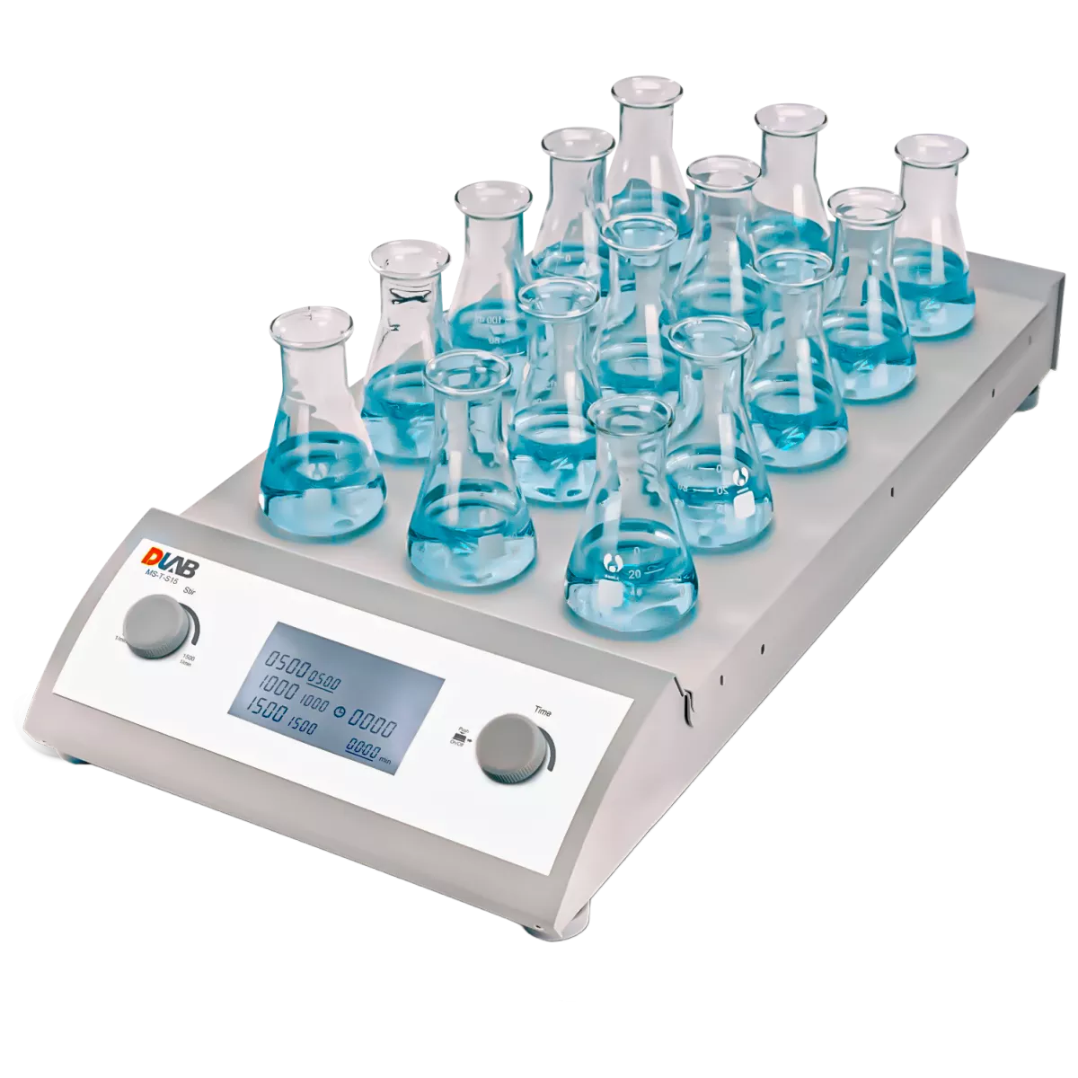 Мешалка магнитная DLab MS-T-S15 – это 15-ти позиционная мешалка для перемешивания жидкости в колбах или стаканах максимального объема 400 мл на одно место.