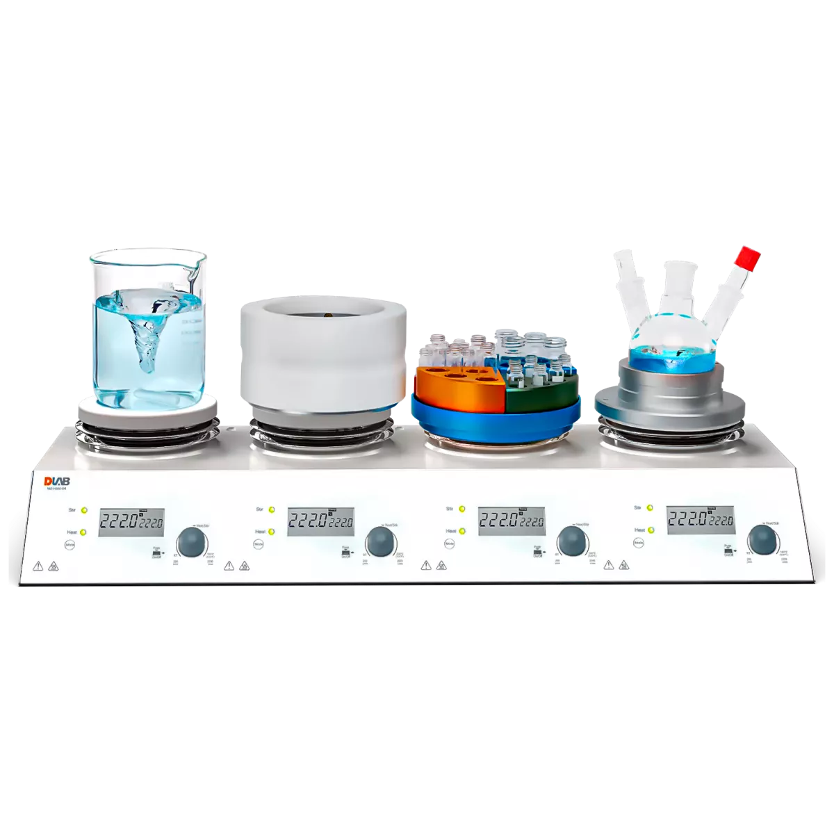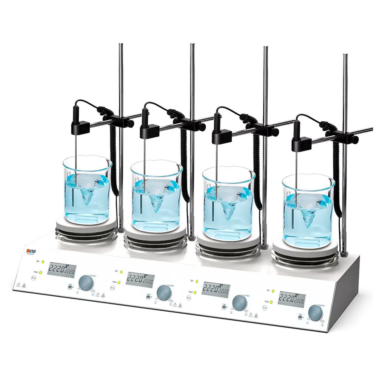 Мешалка магнитная DLab MS-Н280-S4 многоместная применяется для перемешивания и нагрева жидкостей объемом до 3 л на одну позицию в лабораториях.