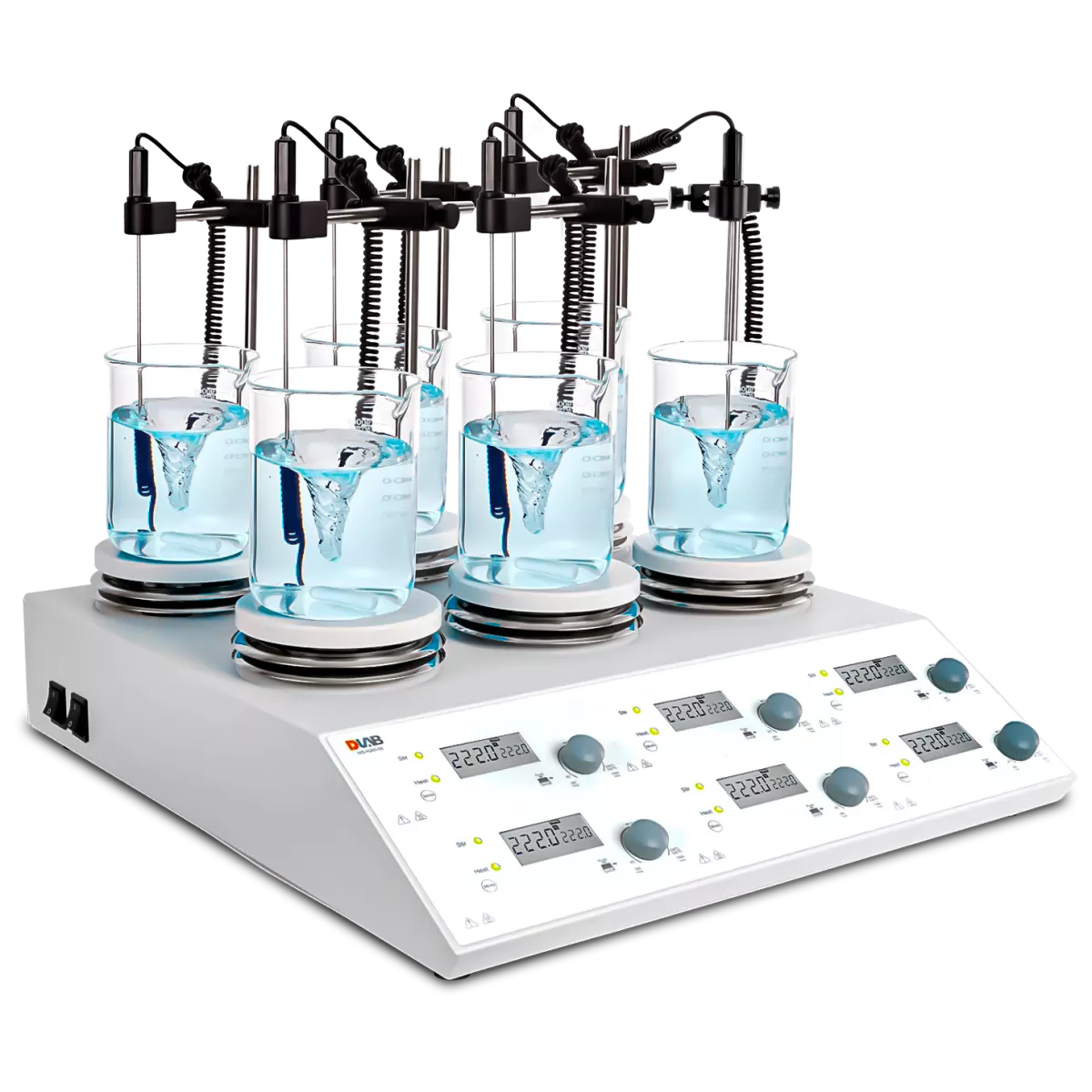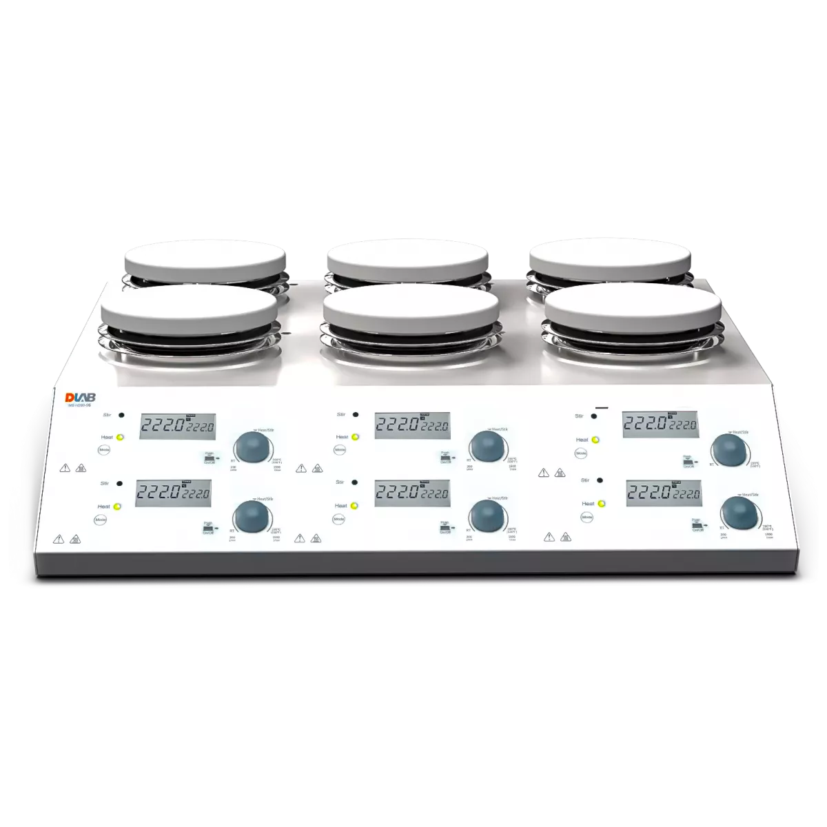 Мешалка магнитная DLab MS-Н280-S 6многоместная применяется для перемешивания и нагрева жидкостей объемом до 3 л на одну позицию в лабораториях.