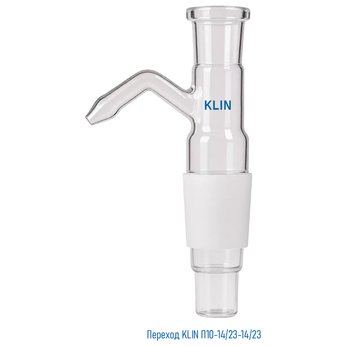 Переход KLIN П1о-14/23-14/23 с одной горловиной и отводом относится к соединительным элементам и предназначен для сборки приборов, аппаратов и установок при переходе от одного конуса к другому.