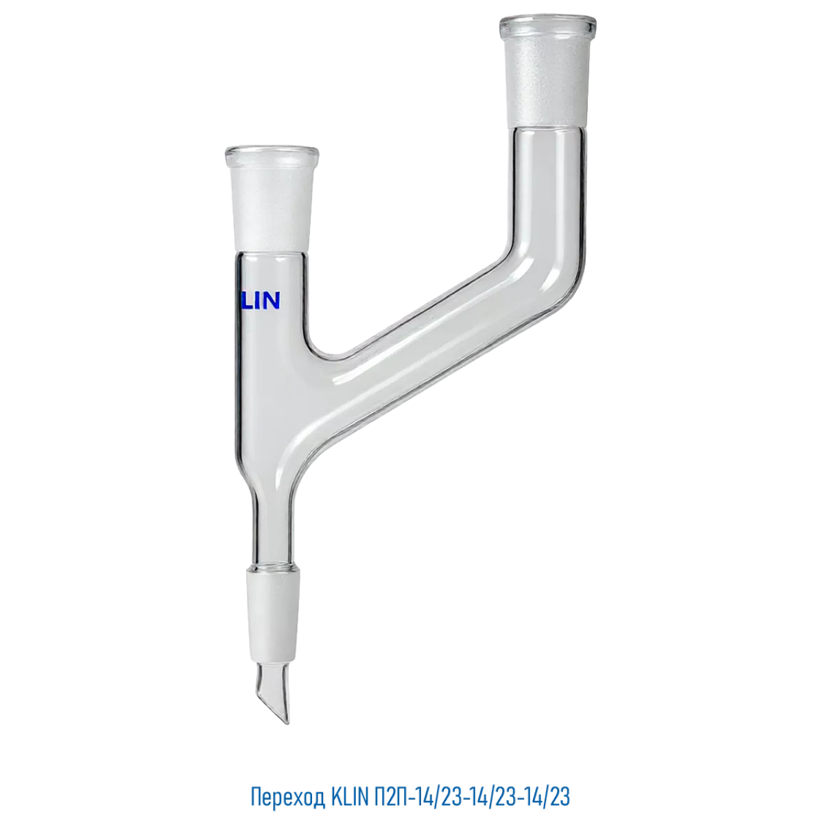 Переход KLIN П2П-14/23-14/23-14/23 с двумя параллельными горловинами относится к соединительным элементам и предназначен для сборки приборов, аппаратов и установок при переходе от одного конуса к другому.