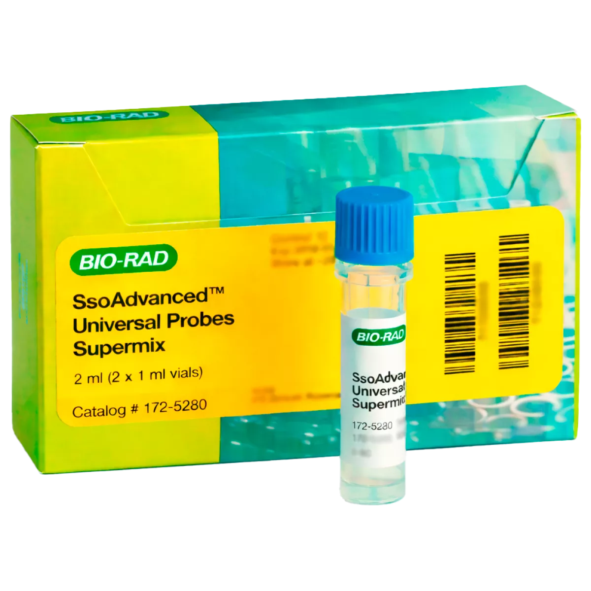 Супермикс SsoAdvanced Universal Probes Supermix используется для ПЦР в режиме реального времени, анализа экспрессии генов, обнаружения мутаций, патогенов и вирусов, состоит из dNTPs, полимеразы Sso7d fusion, раствора MgCl₂, красителя ROX, объём набора 2 мл (2 × 1 мл), рассчитан на 200 реакций по 20 мкл.