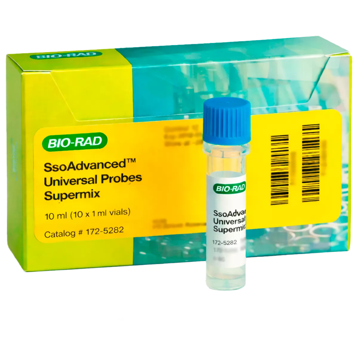 Супермикс SsoAdvanced Universal Probes Supermix используется для ПЦР в режиме реального времени, анализа экспрессии генов, обнаружения мутаций, патогенов и вирусов, состоит из dNTPs, полимеразы Sso7d fusion, раствора MgCl₂, красителя ROX, объём набора 10 мл (10 × 1 мл), рассчитан на 1000 реакций по 20 мкл.