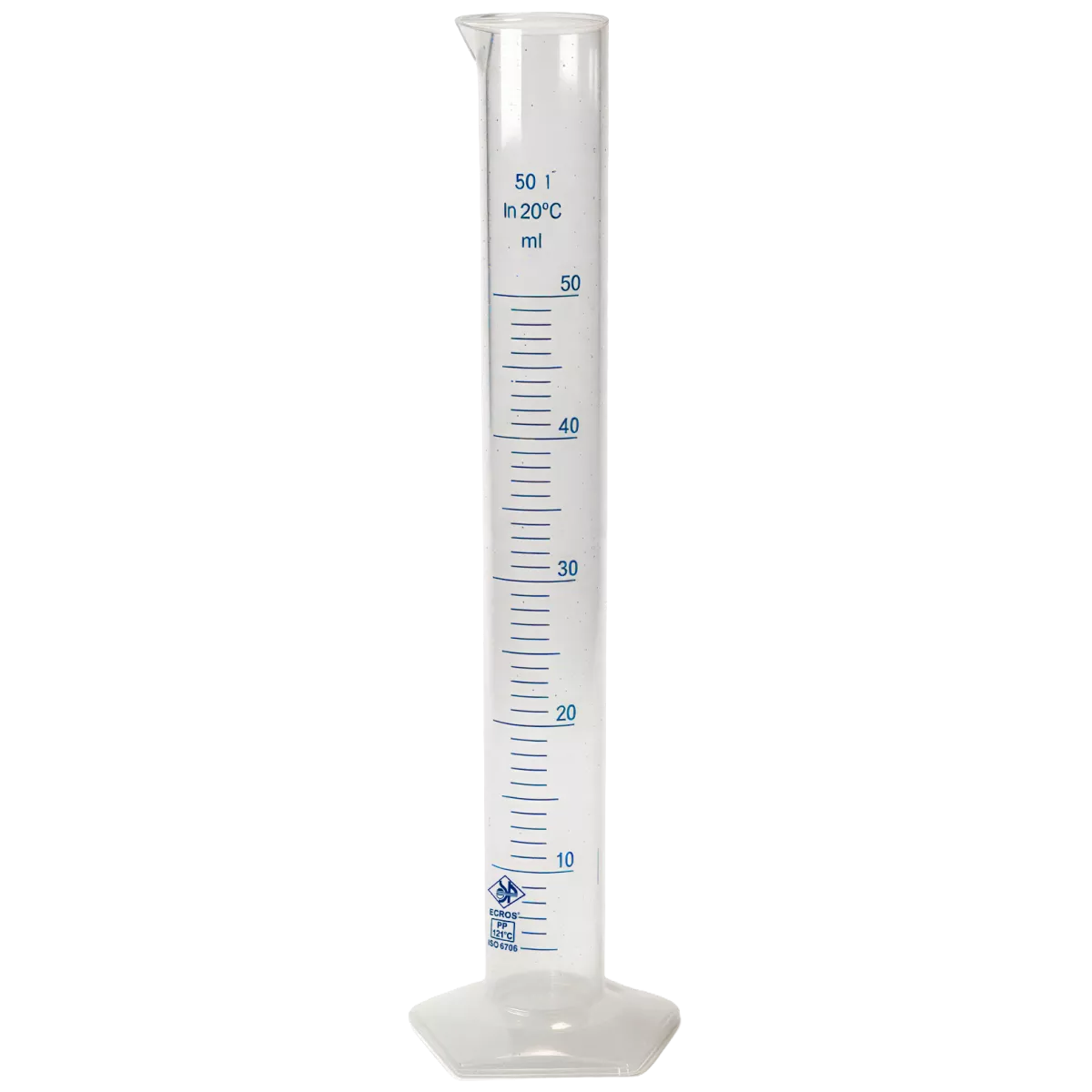 Цилиндр мерный 50 мл из полипропилена - это универсальный мерный инструмент, предназначенный для отмеривания жидкостей, а иногда и сыпучих веществ в лабораторных условиях. Цилиндр представляет собой узкий, строго цилиндрический сосуд с широким устойчивым основанием, с носиком в верхней части для удобства слива жидкости. На боковой поверхности нанесена шкала синего цвета, которая позволяет чётко считывать показания. Мерный цилиндр выполнен из высококачественного полипропилена (ПП), который отличает химическая стойкость, позволяющая работать с концентрированными щелочами, кислотами, альдегидами, алифатическими углеводородами в течение длительного времени. Имеет высокую термостойкость для работы в широком диапазоне температур от -10 до +135 градусов. Изделие можно автоклавировать при температуре 121 градус в течение 20 минут.