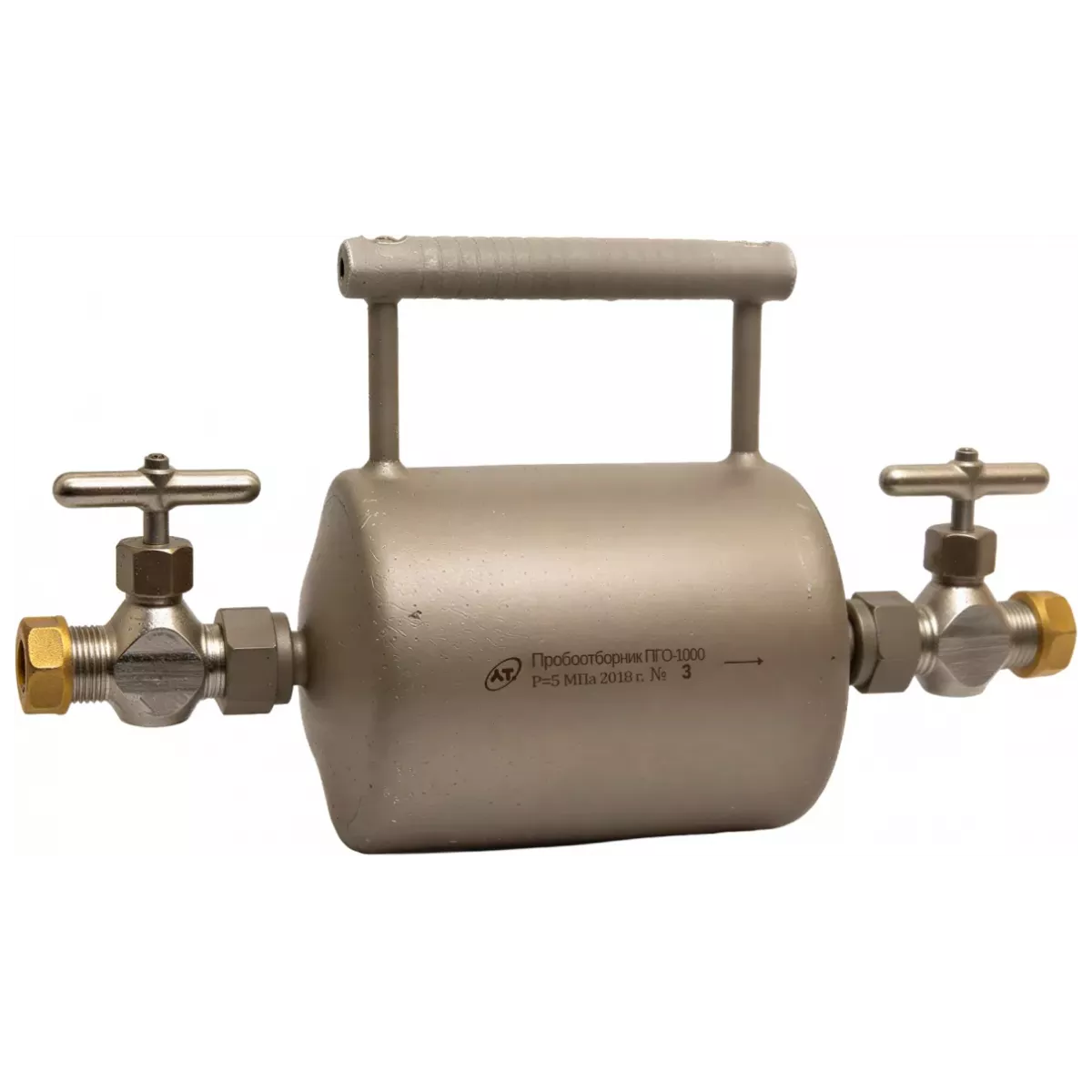 Пробоотборник для газовых проб ПГО-1000 (до 5МПа) с фторопластовым покрытием используетсядля отбора проб сжиженных углеводородных газов по ГОСТ 14921. Применяются для отбора углеводородных газов, находящихся под избыточным давлением собственных паров из стационарных емкостей (цилиндрических, шаровых, железнодорожных цистерн, баллонов, а также из трубопроводов при перекачке газов путем продувки его сжиженным газом).