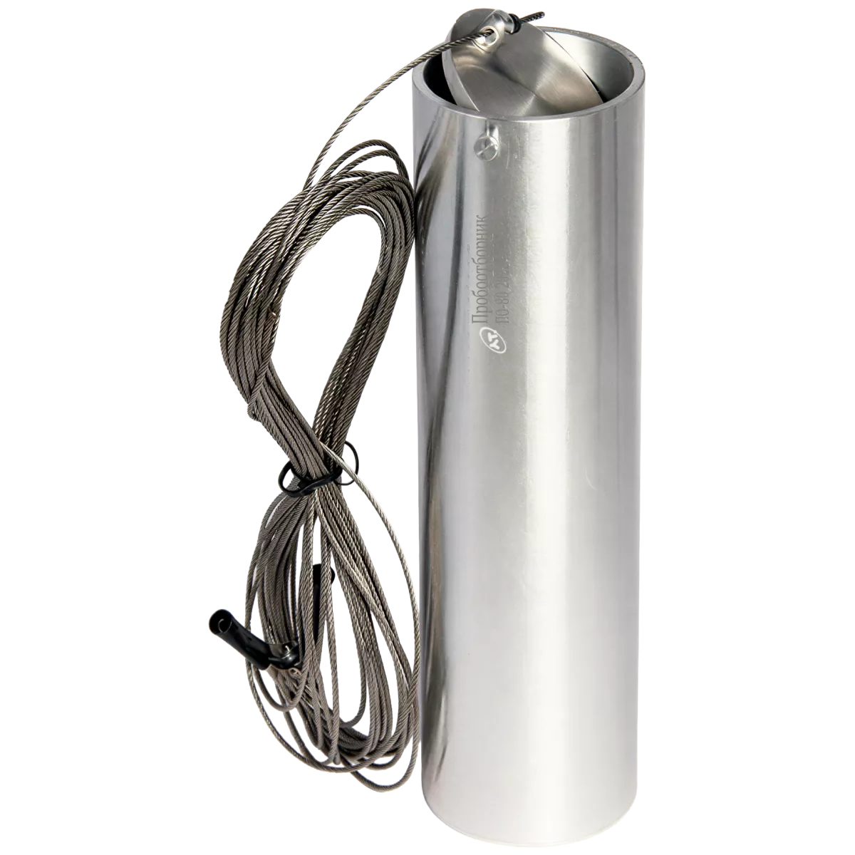 Пробоотборник для нефти и нефтепродуктов ПО-80, 10м представляют собой цилиндрический сосуд, изготовленный из алюминиевого сплава. Имеют захлопывающуюся крышку, которая фиксируется винтами и приводится в движение двумя отрезками металлического троса, закрывая пробоотборник при натяжении одного из отрезков троса.