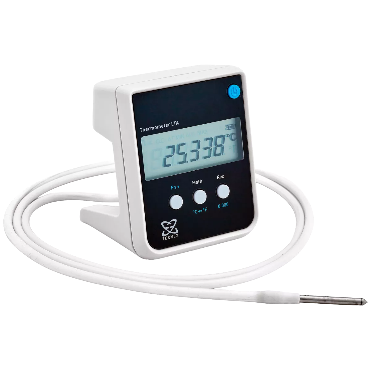 Термометр лабораторный электронный LTA-К Термэкс предназначен для аттестации сушильных шкафов и климатических камер, а также для контактных измерений неагрессивных жидких, сыпучих и газообразных сред. Компактный датчик помещается в небольшие порты и труднодоступные места аттестуемого оборудования.