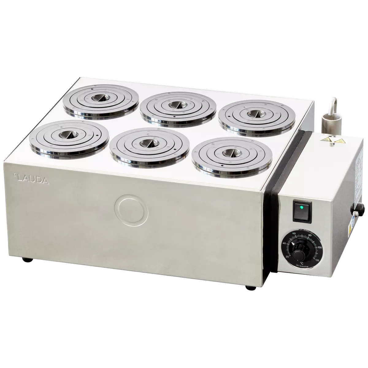 Баня лабораторная Hydro H 11 V водяная шестиместная , Lauda используется для щадящего выпаривания из колб и лабораторных стаканов. Она специально разработана для использования в вытяжных шкафах.