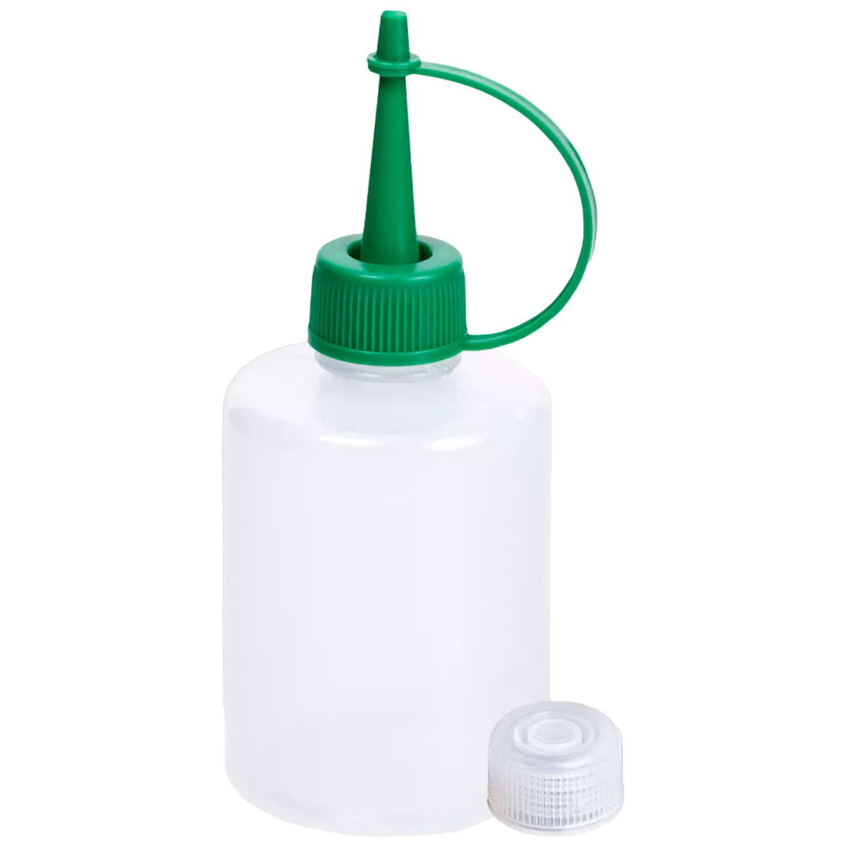 Банка-капельница 40 мл ПЭВД, с зелёной крышкой, с транспортировочной крышкой ПЭ - это специализированная ёмкость, применяемая для хранения, переноса и дозирования жидкостей по каплям. Чаше всего используется для дозирования индикаторов, красителей, стандартных образцов и прочих субстанций. Крышка-дозатор обеспечивает контролируемую подачу жидкости по каплям, предотвращая разбрызгивание. Цветовая индикация крышки позволяет быстро идентифицировать нужное содержимое. Материал банки - полиэтилен высокого давления ПЭВД - является химически стойким, не токсичным полимером, устойчивым к минеральным и органическим кислотам, солям, щелочам, продуктам нефтепереработки, стойкий ударам, оказывает высокое сопротивление при растяжении и сжатии. Возможна эксплуатация при температуре до -60 градусов, а также выдерживает стерилизацию паром при температуре 121 градус в пределах нескольких минут.