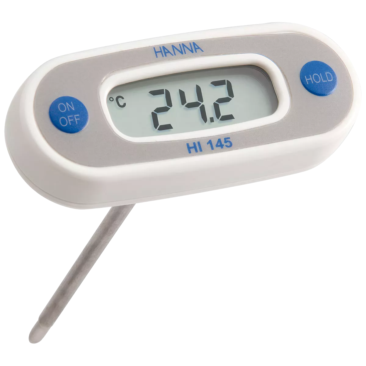 Термометр цифровой HI145-00 Hanna предназначен для измерений температуры в жидких средах, а также в полутвердых образцах. Термометр разработан специально для программ системы управления безопасностью пищевых продуктов (HACCP). Термометры HI145 были разработаны для НАССР программ, которые требуют сочетания высоких стандартов производительности с простотой использования. Прочная Т-образная форма рукоятки удобно располагается в руке и идеально подходит для областей применения, в которых необходимо прикладывать усилие для введения зонда в исследуемые образцы, например, при входящей инспекции мяса и полузамороженных пищевых продуктов. Расположенный в верхней части измерительного прибора ЖК-дисплей позволяет легко считывать показания.