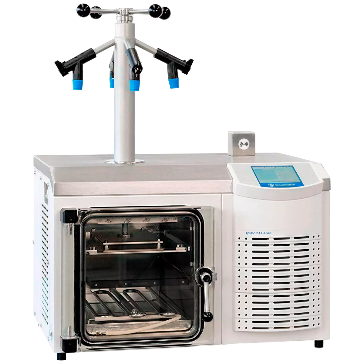 Лиофильная сушилка MartinChrist Epsilon 2-4 LSCplus – компактный высокопроизводительный настольный прибор для сушки водных образцов во флаконах, ампулах, пробирках и другой стеклянной посуде.